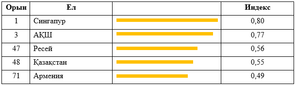 KPMG талдауы Қазақстанда жасанды интеллект экожүйесін дамытуда елеулі ілгерілеу бар екенін көрсетеді, бұл HR-функцияларды цифрландыру әлеуетінің жоғары екенін айғақтайтын маңызды белгі болып табылады. Есепке сәйкес, Қазақстан Халықаралық валюта қоры әзірлеген AI Preparedness Index көрсеткіші бойынша жасанды интеллектіні енгізуге дайындық деңгейі жоғары әлемнің топ-50 елі қатарына кіреді: ел 174 мемлекет ішінде 48-орынды иеленіп отыр [8]. Бұл көрсеткіш өңірдің басқа мемлекеттерімен салыстырғанда Қазақстанның цифрлық әлеуетінің салыстырмалы түрде жоғар деңгейін көрсетеді.