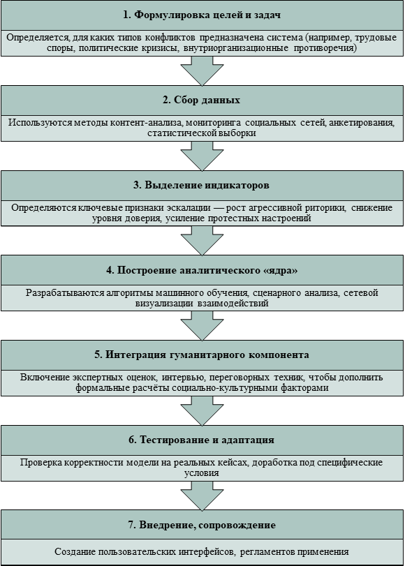 Как представляется, последующее развитие модели будет связано с углублением методов машинного обучения, расширением базы эмпирических данных, интеграцией гуманитарных знаний в цифровые платформы. Вероятно, именно синтез технологий и социокультурного анализа позволит в будущем создавать более устойчивые механизмы предотвращения эскалации и формирования конструктивных форм взаимодействия.