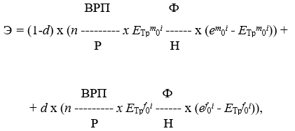 Косвенная оценка экономического ущерба (Борохов Д.З., 1975), наносимого смертностью, рассчитана через долю ожидаемого прироста объема предстоящей трудовой деятельности (∆TТр) и величину валового регионального продукта (ВРП):