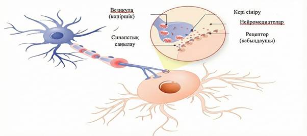 Сурет 2. Синапстық беріліс механизмі және нейромедиаторлардың постсинапстық нейронға әсер етуі