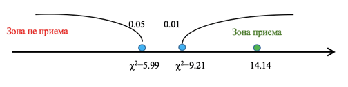 На основе эмпирических данных рассчитывались теоретические частоты. Критерий Пирсона χ2 имел значение 0,12. При степени свободы v = 2 критическое значение составляло 5,99 (α = 0,05). Поскольку вычисленное значение χ2 намного меньше критического значения, была принята нулевая гипотеза H₀ – то есть разница между группами на определяющем этапе статистически не значима.
