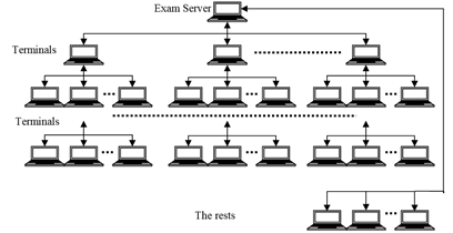 При этом программа экзаменационного терминала каждого узла отправляет с экзаменационного сервера список IP-адресов узлов, выделенных из LoT. Таким образом, иерархическая модель — это модель, которая определяет размерность иерархической структуры в соответствии с количеством экзаменаторов и передает, и получает данные, связанные с экзаменом, через распределительные узлы.