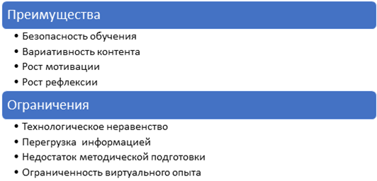 Иммерсивная среда повышает мотивацию и обеспечивает эффект присутствия, что делает учебные ситуации более реалистичными. Однако авторы подчёркивают необходимость методического сопровождения, чтобы избежать когнитивной перегрузки [6].