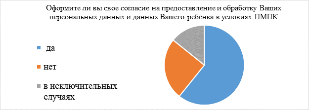 - Оформите ли вы свое согласие на предоставление и обработку ваших персональных данных и данных вашего ребёнка в условиях ПМПК: да, нет; в исключительных случаях.