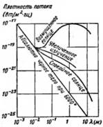 Для полноты изложения следует упомянуть о возможных помехах со стороны излучения, вызываемого грозовыми разрядами. Максимум излучения атмосферных разрядов лежит в диапазоне длинных волн (λ≈1 км), но заметную величину могут иметь гармоники на метровых и дециметровых волнах. Например, на длине волны 50 см поток мощности излучения молний может достигать величины