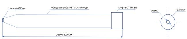 6. Гидромониторная насадка: Ключевой элемент технологии. Насадка 25 мм для обсадных труб диаметром 245 мм, 178 мм или 168 мм устанавливаются на конце обсадной трубы, которая используется для бурения шурфа (рисунок 1 и рисунок 2).