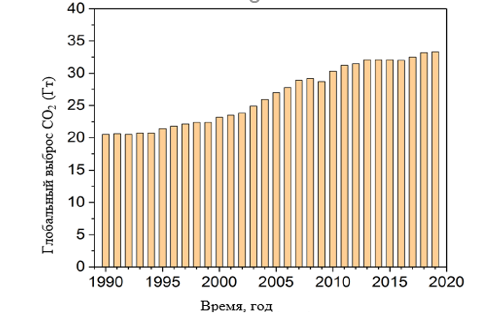 Проблема изменения климата, вызванного антропогенными выбросами парниковых газов, в частности углекислого газа (CO₂), является одной из наиболее актуальных и сложных задач, стоящих перед мировым сообществом в XXI веке. Увеличение объемов добычи и использования углеводородного сырья, несмотря на растущее внимание к возобновляемым источникам энергии, продолжает оставаться основным фактором, способствующим увеличению концентрации CO₂ в атмосфере [1, с. 10]. Последствия глобального потепления, проявляющиеся в экстремальных погодных явлениях, снижении урожайности сельскохозяйственных культур и деградации экосистем, становятся все более ощутимыми [2, с. 8].