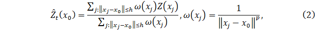 получается с помощью средневзвешенного значения всех доступных измерений. Веса пропорциональны обратному расстоянию между интересующим местоположением и теми, где доступны измерения оцениваемой переменной. Ближайшие доступные наблюдения взвешиваются сильнее: