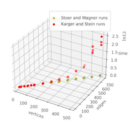 Экспериментальный анализ времени выполнения алгоритмов полностью соответствует теоретическим ожиданиям, выведенным из анализа их сложности. Результаты подтверждают, что алгоритм Каргера-Штейна демонстрирует худшую производительность по сравнению с алгоритмом Штера-Вагнера.