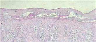 - появление небольших, легко лопающихся пузырьков с прозрачным содержимым, после которых остаются поверхностные повреждения кожи (эрозии).