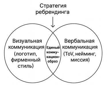Рисунок 1. Схема взаимосвязи визуальной и вербальной коммуникации в процессе ребрендинга