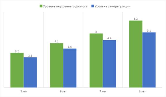Рисунок 1. Динамика развития внутреннего диалога и саморегуляции у детей 5–8 лет