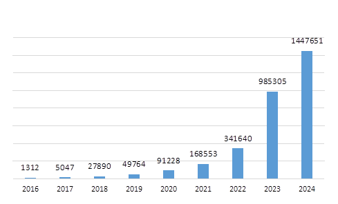 Ниже представлена таблица по совершенным исполнительным надписям с 2016 по 2024 гг [4].