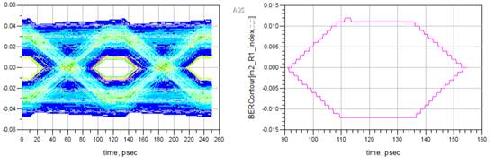 В рамках исследования была разработана методика автоматизированной корректировки параметров симуляции для построения глазковых диаграмм в среде САПР. Алгоритм реализован на основе скриптового управления, что позволяет интегрировать его в существующие рабочие процессы проектирования. На рисунке 3 представлен интерфейс построенной глазковой диаграммы по той же дифференциальной паре.