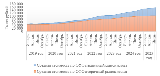 Рисунок 1. Динамика средней стоимости квадратного метра жилья в СФО