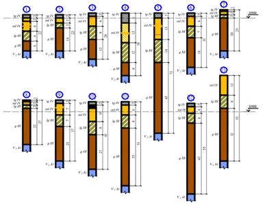 Они достаточно изучены и типизированы, что позволяет использовать накопленные результаты исследований. На рис. 3 и рис. 4 представлены схема инженерно-геологического районирования Санкт-Петербурга и обобщённые геологические разрезы по районам [7,8].