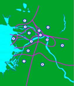 Рисунок 3. Схема инженерно-геологических районов Санкт-Петербурга (по Д.Сапину [8])
