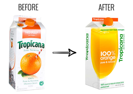 - Что сделали: Радикальный ребрендинг ($35 млн) для модернизации и придания "премиального" вида. Удалили иконку апельсина, заменили теплые тона белым фоном (ассоциации с дешевизной/химией), название сделали вертикальным и менее читаемым. Ключевая ошибка: Игнорирование эмоциональной связи покупателей.