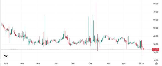 Аналитики «РБК Инвестиции» провели опрос специалистов относительно факторов, обусловивших положительную динамику котировок отдельных эмитентов, а также оценили их потенциал до конца 2025 года [5]. Десятка лидеров по итогам шести месяцев включает представителей телекоммуникационной отрасли, металлургии, девелопмента и два финансовых института. При этом энергетический сектор, представленный сбытовыми и распределительными предприятиями, занял пять позиций рейтинга наиболее доходных активов периода. Данные акции демонстрируют значительные колебания цен, что отражается в их высокой волатильности. Это свидетельствует об очень высоких рисках, связанных с инвестициями в эти инструменты, однако также предполагает возможность получения высокой доходности при грамотном управлении позициями. Помимо высокой волатильности, эти акции характеризуются различными ценами, объемами торгов и рыночной капитализацией.