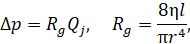 установившийся перепад давления задаётся формулой Пуазейля: