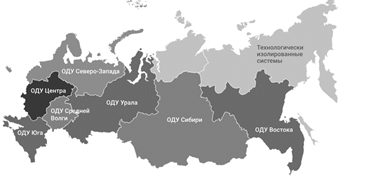 Рисунок 1. Объединенные энергетические системы на карте