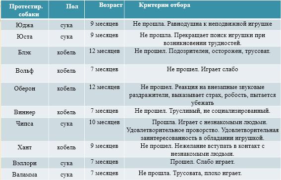 На таблице 1 и 2 отражены основные критерии, который повлияли на отбор собаки.
