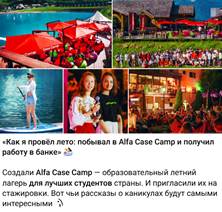 Рисунок 5. Пост об Alfa Case Camp в сообществе Alfa Students ВКонтакте
