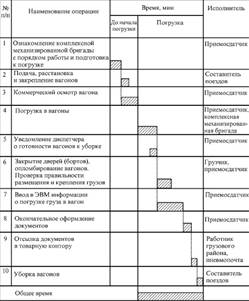 Динамика роста производственных мощностей заставляет преобразовывать грузовые работы на станциях, необходимы средства механизации с высокой производительностью. Например, если на станции погрузка сыпучих грузов, тогда есть необходимость пересмотреть мощности транспортеров для погрузки в вагоны-хопперы, так как малая производительность машин осуществляет погрузку с большим течением времени. В свою очередь большое время на погрузку замедляет формирование составов для отправления, а дальше рушится время всей цепочки поставок, что грозит высокими штрафами и большим количеством претензий от грузоотправителей и грузополучателей. Технологический график погрузки приведен на рисунке 2.