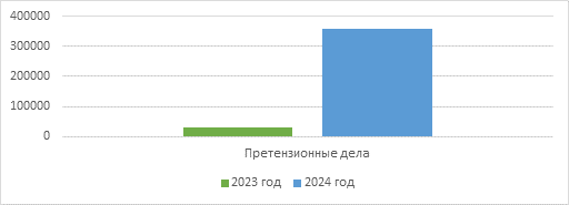 Все недостатки в местной работе сказываются и на другие аспекты хозяйственной деятельности. Так, на станции Красногвардеец в период с 01.01.2024 по 31.12.2024 появилось 25 претензионных дел на сумму = 357383 рублей. Рассмотрим подробнее на графике рисунка 1.