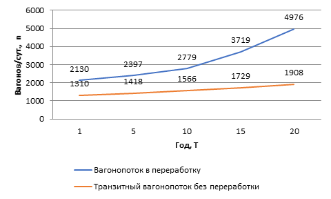 Темп роста транзитных поездов составляет 2 % от исходных.