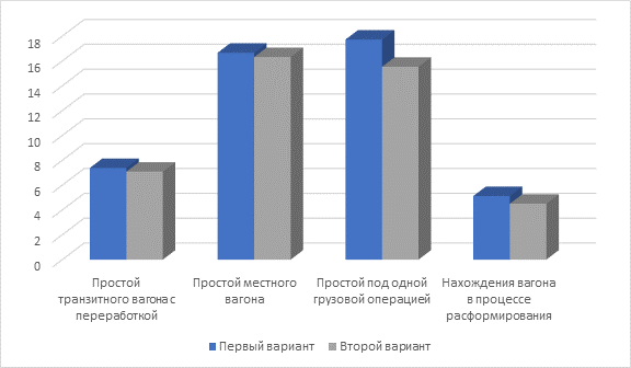 Рисунок 2. Временные простои до и после удлинения пути (первый и второй вариант)