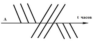 Практика показала, что строительство большого количества дополнительных станционных путей параллельно существующим главным для организации пакетного движения, что применялось в прошлом при отсутствии современных средств сигнализации и связи на железнодорожном транспорте, вызывает резкое увеличение простоя поездов при образовании пакетов (рис. 1).