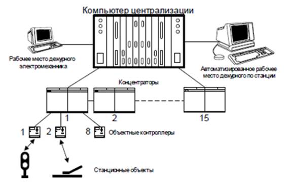 – система объектных контроллеров – является интерфейсом к объектам на станции (стрелочные электроприводы, светофоры, рельсовые цепи и др.) и связывает их с центральной обрабатывающей системой.