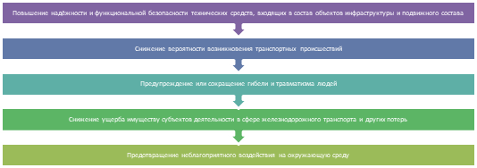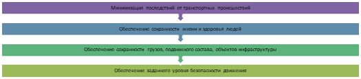Стратегия обеспечения безопасности и надежности транспортного процесса в холдинге ОАО "РЖД" определяет комплекс подходов, принципов и мер, позволяющих обеспечить стабильную работу транспортного процесса с заданными показателями норм безопасности. Рассмотрим ее основные цели на схеме рисунка 1.