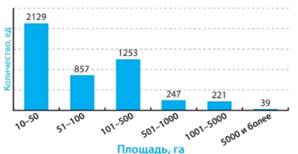 Рисунок 2. Гистограмма распределения торфяных месторождений по площади