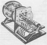 В 1842 году Б. С. Якоби создал магнитоэлектрический генератор, который он назвал «магнитоэлектрической батареей». В этом устройстве магниты были размещены на неподвижной части (статоре), в то время как обмотка находилась на вращающейся части (роторе). Это решение дало возможность значительно уменьшить размеры генератора благодаря использованию редуктора. Кроме того, с помощью коммутатора направление тока в электромагнитах ротора изменялось при каждом обороте вала, что обеспечивало их поочередное притяжение и отталкивание от статора.