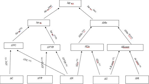 Далее для определения влияния факторов на результативный показатель проводится факторный анализ. Он показывает, как именно показатели влияли друг на друга и что можно изменить, чтобы увеличить рентабельность материальных затрат в итоге.