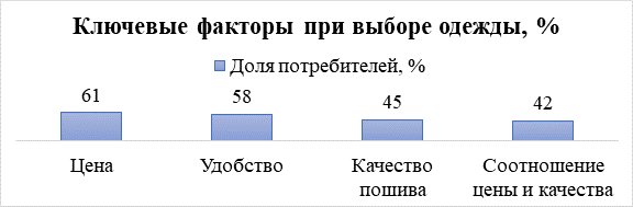 Рисунок 1. Ранжирование ключевых факторов потребительского выбора в сегменте одежды в 2025 г. [1]
